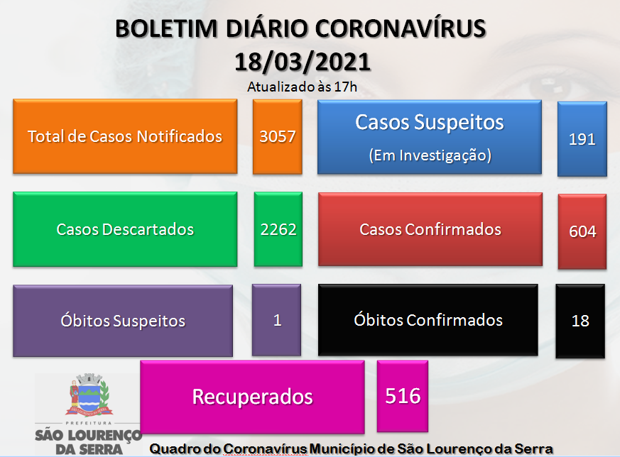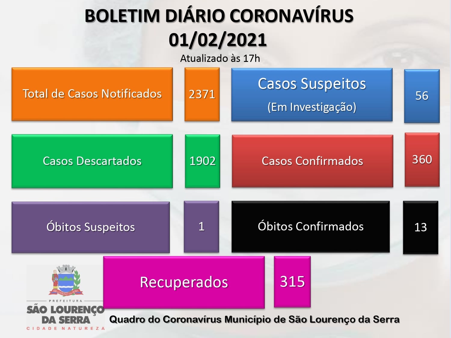 BOLETIM INFORMATIVO COVID-19 – Atualização do número total de casos em São Lourenço da Serra. (2021)