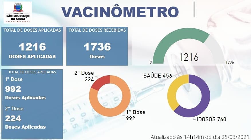 VACINÔMETRO – Atualização detalhada do número de vacinados contra a Covid-19 em São Lourenço da Serra. (2021) 2021-03-26PMSLS